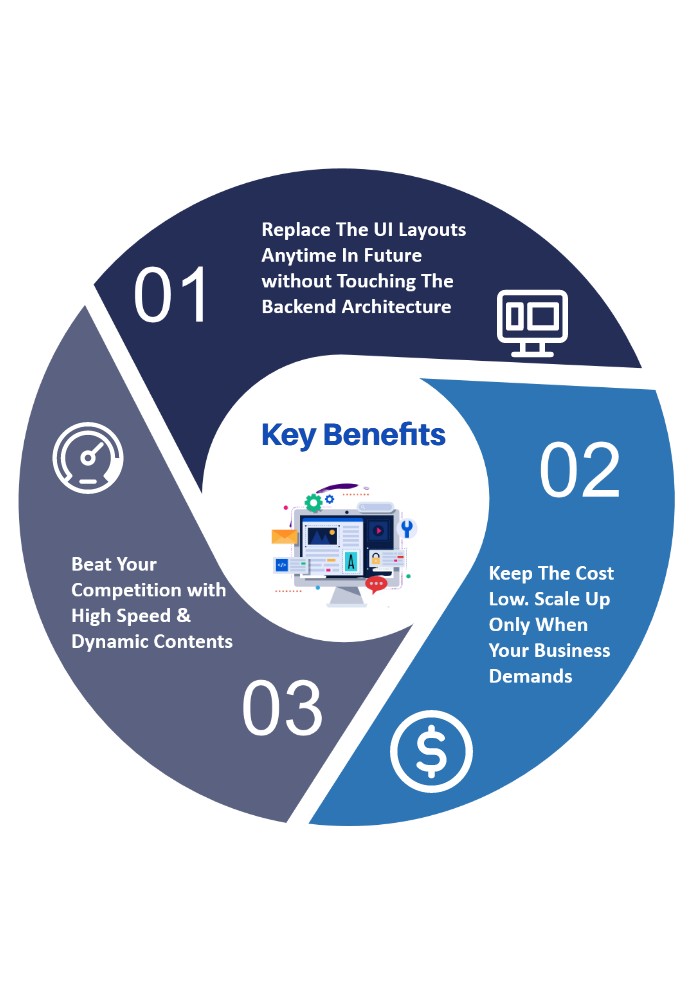 Get highly scalable and agile backend architecture to match your business needs now and in the future. Save money in redeveloping your websites every few years.